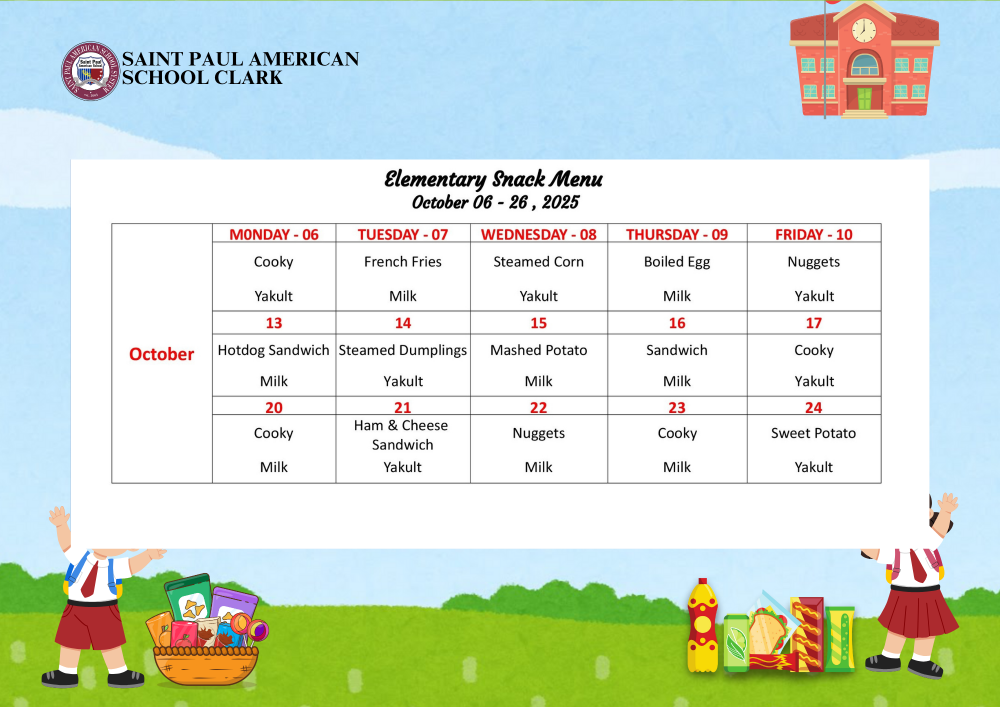 Elementary Snack Menu October 06 - 26, 2025